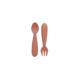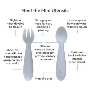 - Narrow spoon bowl / fork prongs safely fit toddler’s mouth
