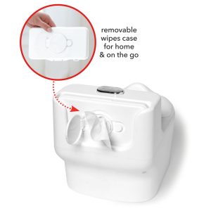 - Back storage compartment holds removable wipes case (included), books and more!